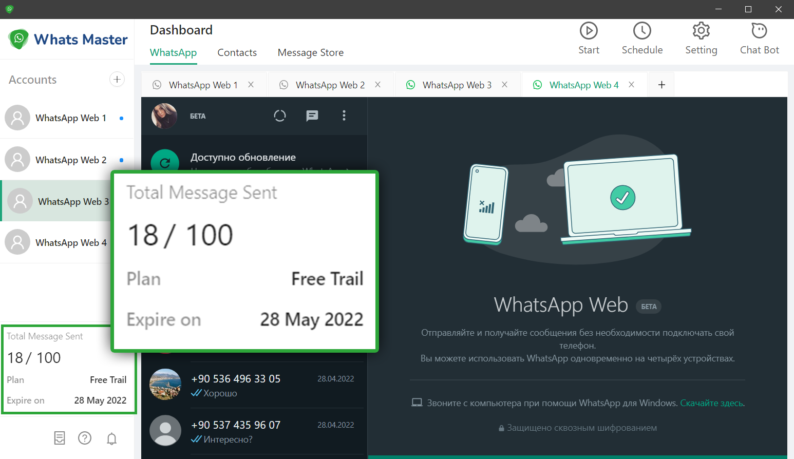 Whats Master - Программа для Ватсап рассылки и Автоматизации с помощью Чат-Ботов и Автоответчика