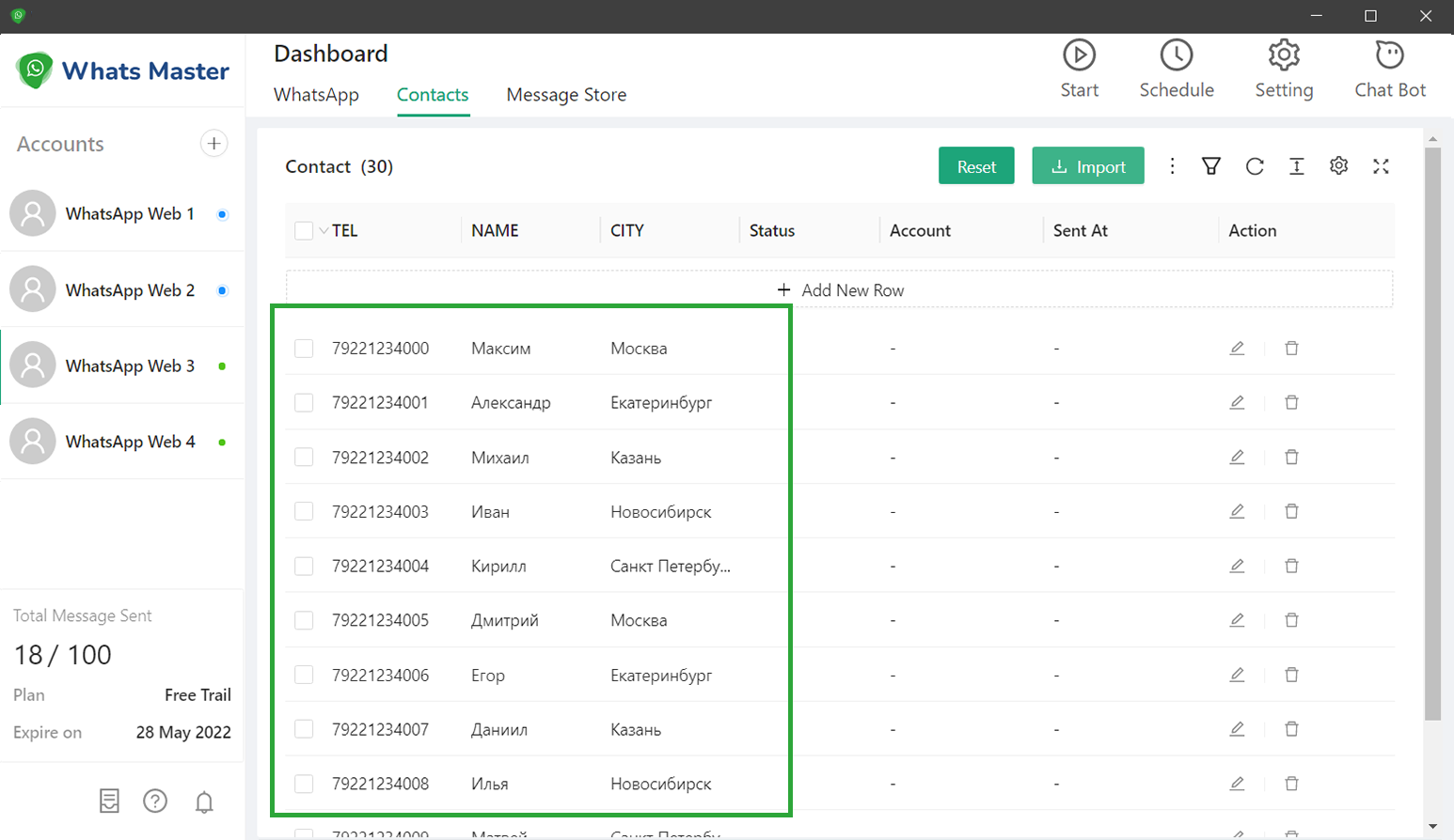Вся информация о добавленных Ватсап Аккаунтах, рассылках, импортированных контактах и настройках хранятся на ПК и не удаляются при переустановке или удалении программы. При установке программы на другом ПК, эти данные не переносятся.