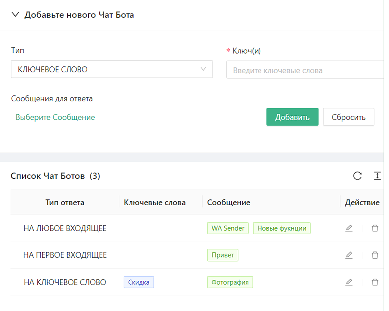 Вы можете общаться с клиентами в самой программе через WhatsApp WEB, либо настроить Чат-бота, который будет отвечать на популярные вопросы по ключевым словам.