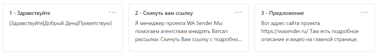 1й Шаг - Рассылка сообщения с обычным приветствием {Здравствуйте|Добрый День|Приветствую}